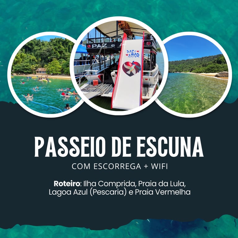 Com saídas diárias às 11h e retorno às 16h, o roteiro inclui quatro paradas paradisíacas: